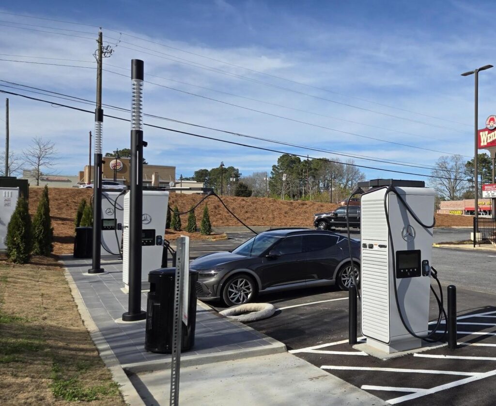 Some stops don’t require much thought. Along Pooler Parkway in Conyers, the chargers sit right next to Wendy’s. You already know how the next 20 minutes will go: a short walk to a familiar counter, followed by a burger and fries, chicken nuggets, maybe a Frosty if the timing feels right.